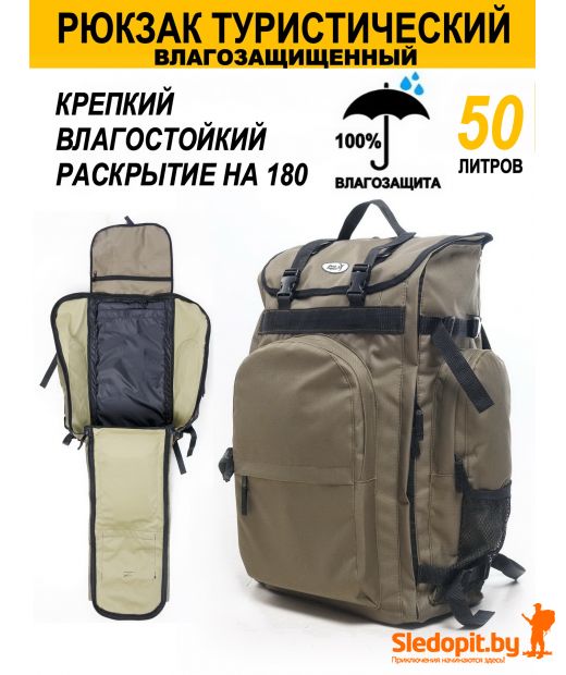 Объемный и вместительный рюкзак для походов на 50 литров закрывается по всей длине 2 замками-молниями, благодаря чему есть возможность полного раскрытия рюкзака для быстрого доступа внутрь. Три наружних больших кармана на молниях и два кармана-сетки позволяют разместить в быстром доступе множество полезных вещей, а внутренний карман на крышке спрятать документы или карту, все молнии закрыты защитными клапанами. Удобные анатомические лямки толщиной 10мм имеют регулировку как снизу, так и сверху, все места крепления лямок дополнительно усилены. Наличие 4 боковых штормовых затяжек позволяет придавать правильную форму рюкзаку для охоты, в случае не полного заполнения объёма. При помощи этих затяжек можно крепить доп. длинномерный груз (удочки, весла, ледобур и.т.д.) Длина строп закрывающих крышку позволяет крепить доп. груз (палатку, спальник и т.д.) сверху на рюкзак. Рюкзак для рыбалки имеем полужесткую спинку (внутри пенополиэтилен 10мм) поэтому спина не устает от длительной ходьбы.