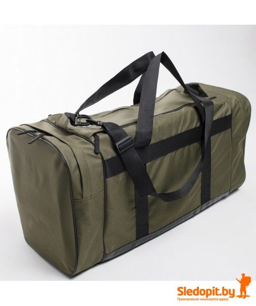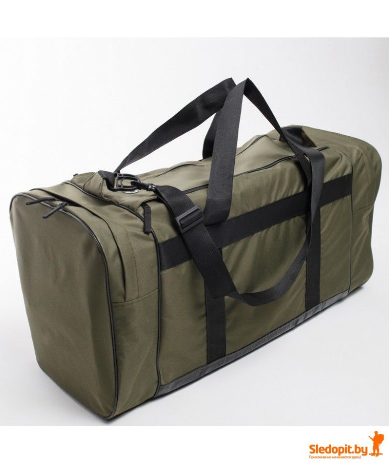 Сумка универсальная изготовлена по заказу компании "Следопыт" и выполнена из прочной водозащищенной прорезиненной ткани, имеет объем 95 литров.